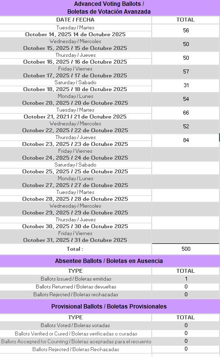 habrá votación avancada el lunes 13 de Octubre 2025 debido al Día de Colón.